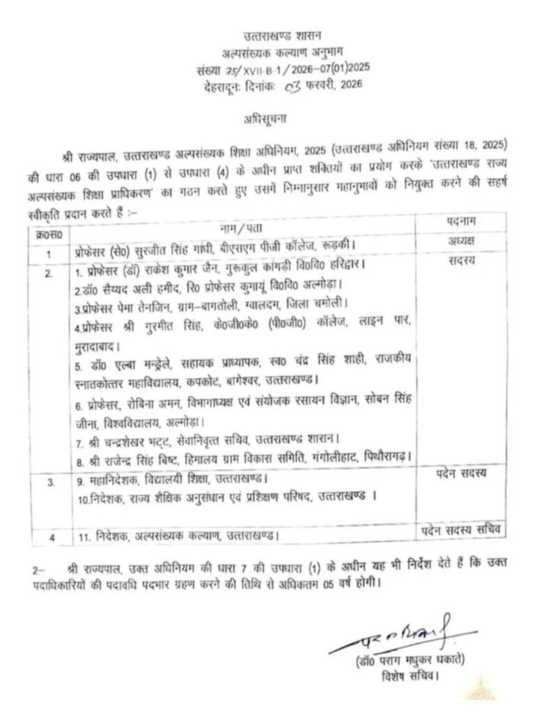 उत्तराखंड की पुष्कर सिंह धामी सरकार ने राज्य की शिक्षा व्यवस्था में एक बड़ा बदलाव करते हुए मदरसा बोर्ड को समाप्त करने का निर्णय लिया है। इसके स्थान पर अब ‘उत्तराखंड राज्य अल्पसंख्यक शिक्षा प्राधिकरण’ का गठन कर दिया गया है, जो जुलाई 2026 से पूर्ण रूप से प्रभावी होगा।अब सभी अल्पसंख्यक संस्थानों की मान्यता उत्तराखंड शिक्षा बोर्ड द्वारा की जाएगी।